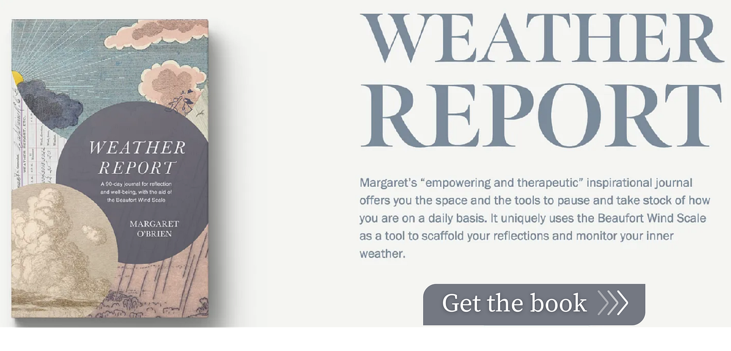 If you have a copy of my book, Weather Report: A 90-day journal for reflection and well-being, with the aid of the Beaufort Wind Scale, you might have noticed two things; that you are daily invited to write or draw, 'one thing you found beautiful today', and a list of reading resources at the back. These are not unconnected.